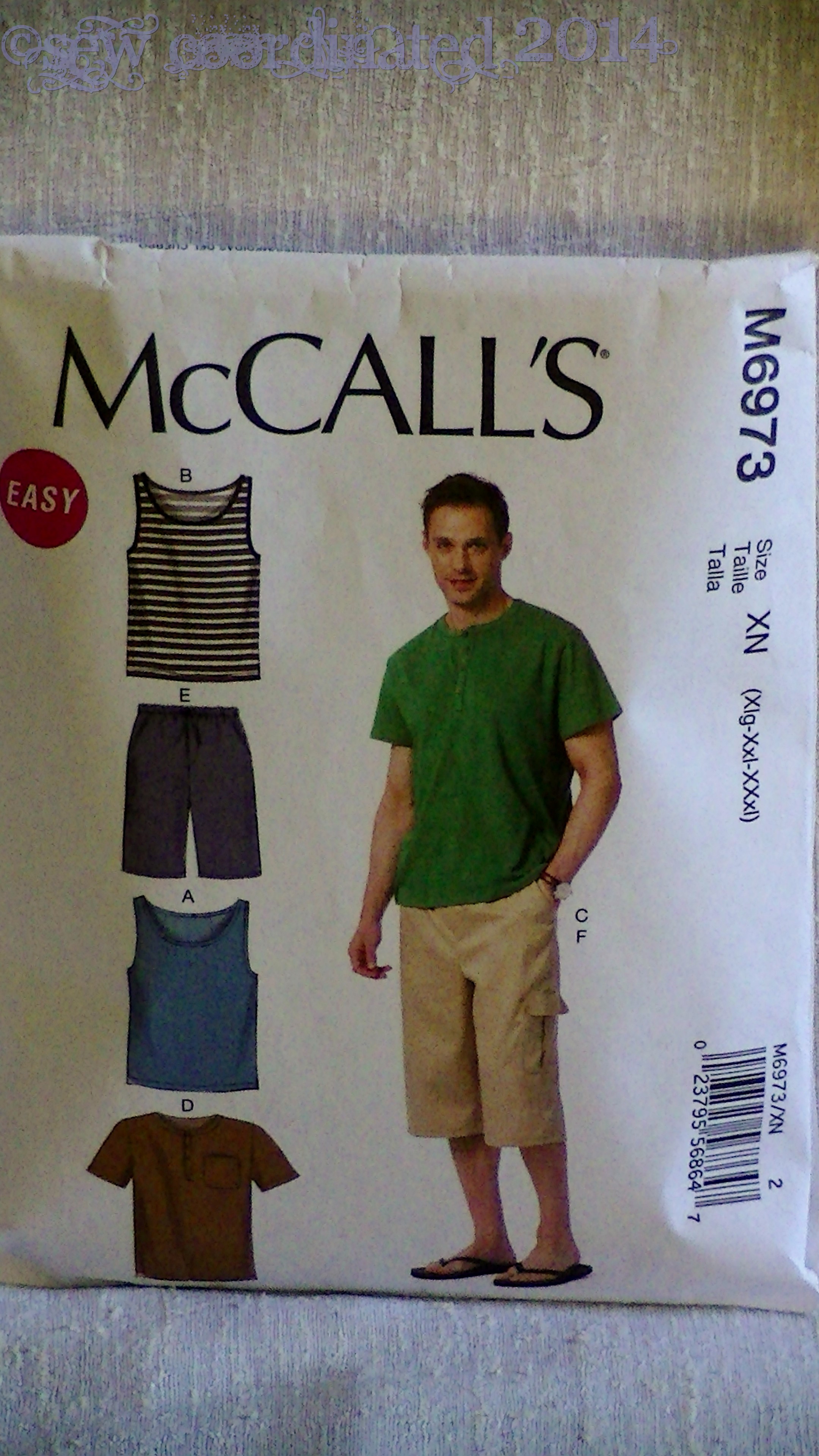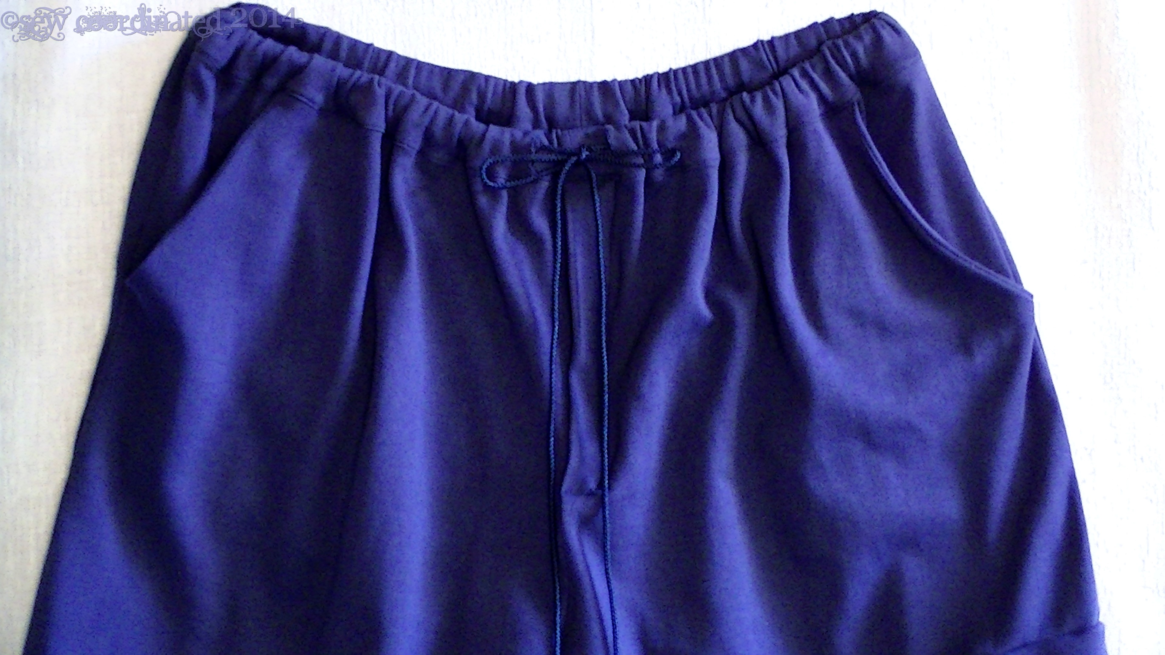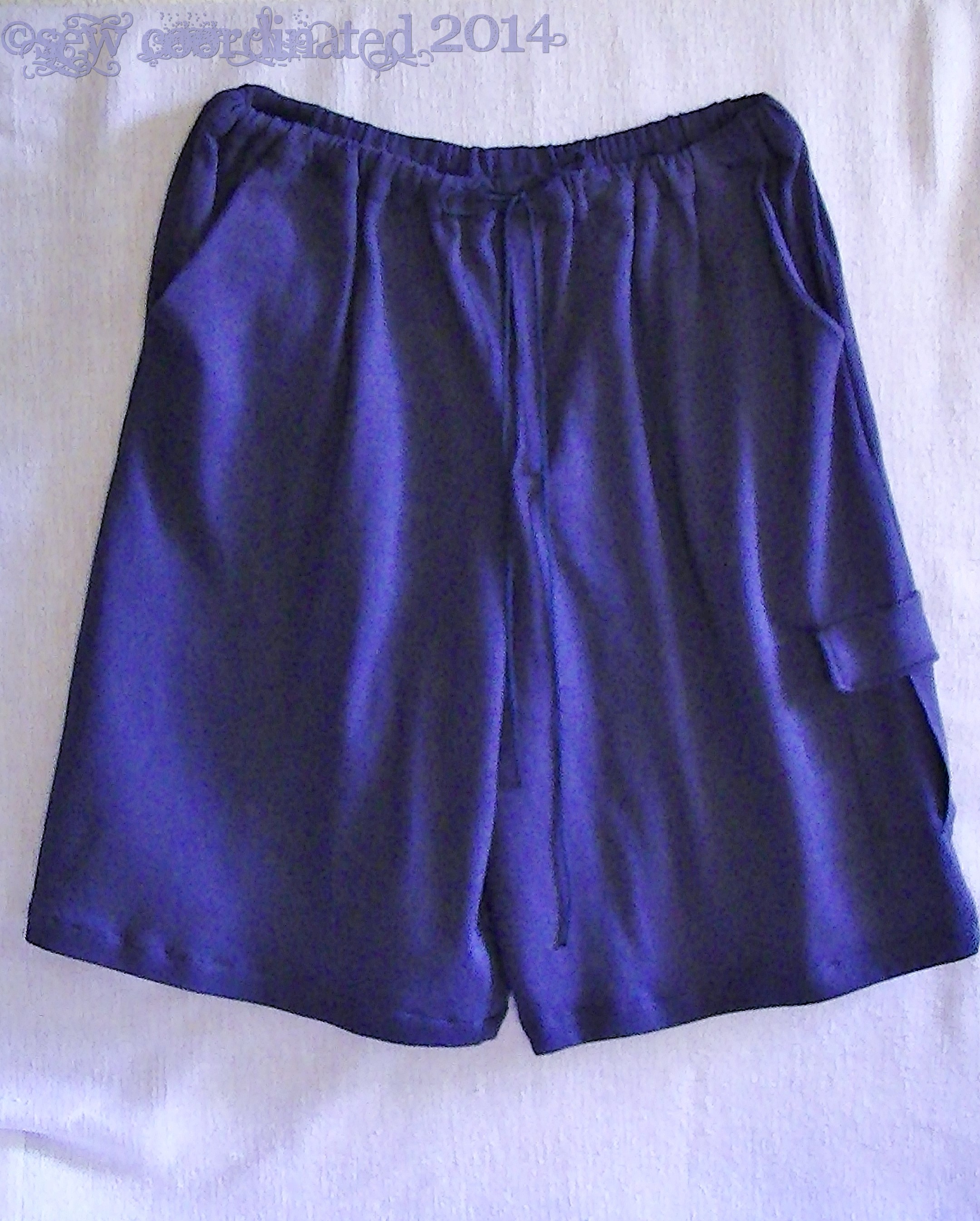 This pattern was on sale, and my son needed new shorts, so I gave it a try. I liked the basic styling of them. They have side pockets, a front fly with zipper, and a waistband that has both elastic and a drawstring. I made view F, which has an additional pleated pocket with flap on the left leg. The fabric I chose is rib knit, which I thought would be comfy for summer.