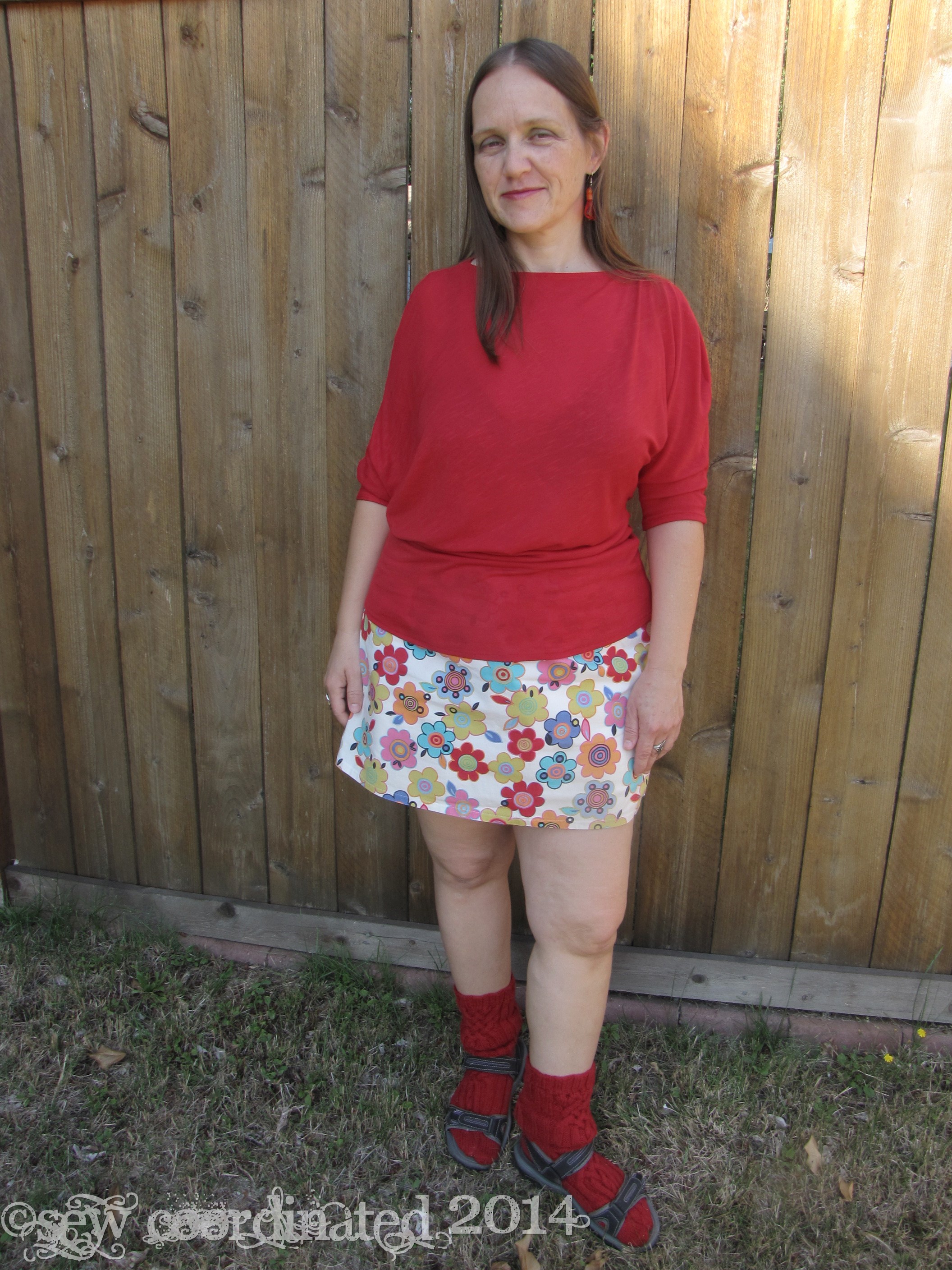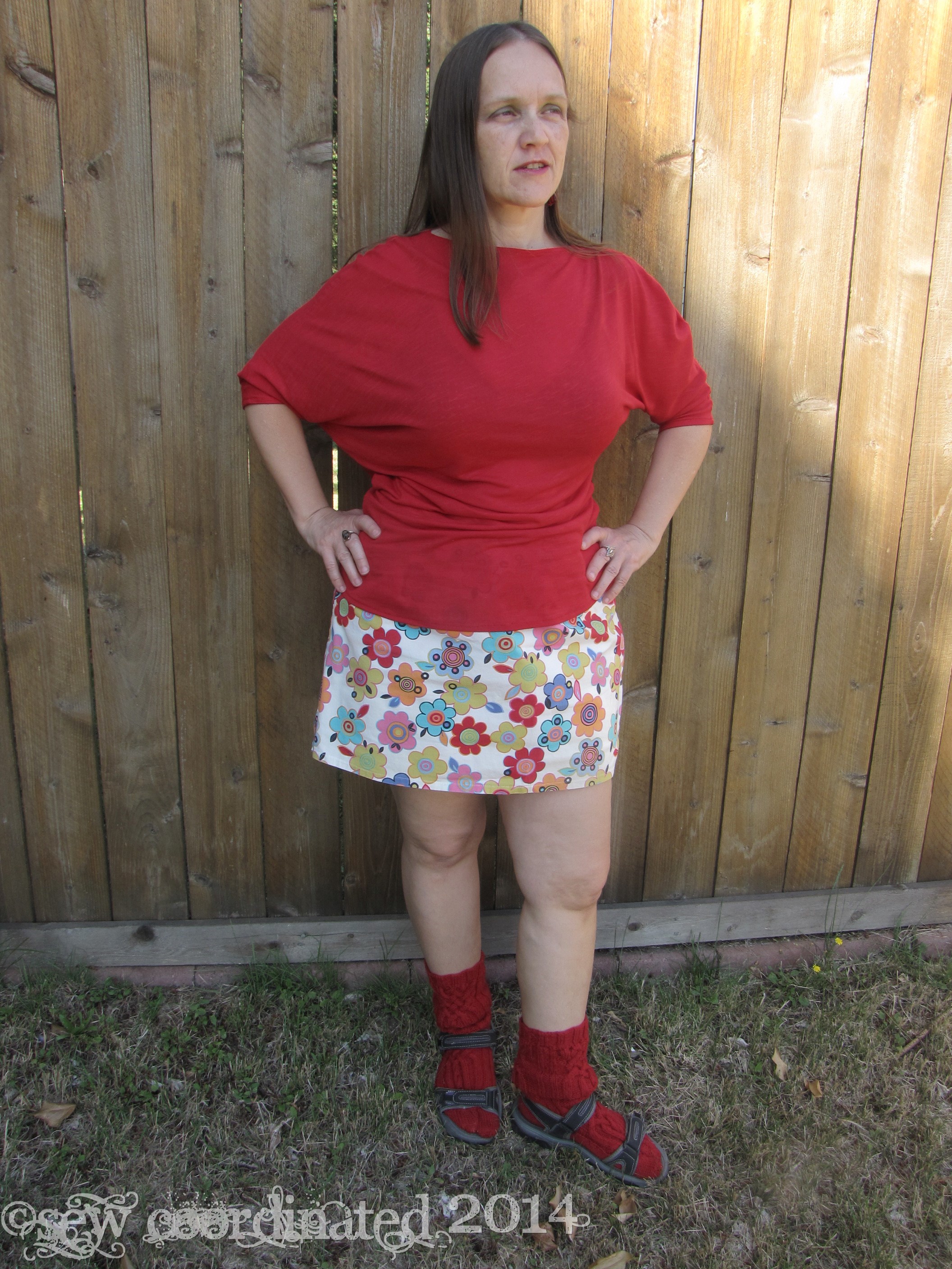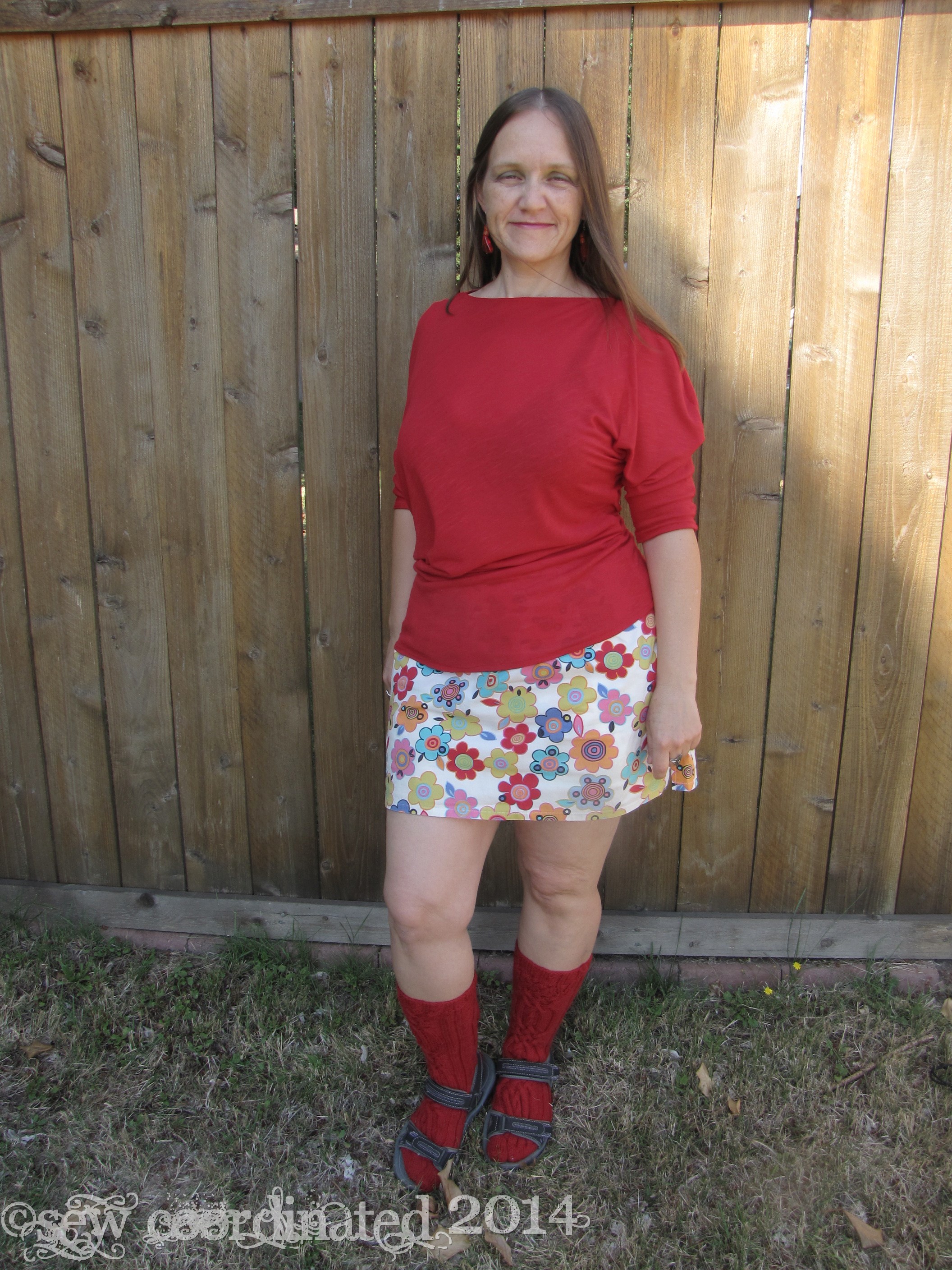 I’ve been sewing some three quarter sleeve tops in order to be prepared for the cooler weather. One of them is McCall’s 6400, which I bought about a month ago, and now just discovered is out of print. Got it just in time! It’s an easy to sew stretch knit shirt pattern. I made it out of very stretchy rayon knit, the kind of knit that’s very thin and floppy and has a lot of drape. As far as construction goes, it couldn’t be easier: a two piece batwing asymetrical design – just sew the front and back together, and you’re done. All that’s left are the hems. Simple, huh? Well yes, until the neckline turned out to be too large. I cut the shirt in a medium and when I tried it on before hemming it seemed ok. However, after it was hemmed it lost its “cling” that this kind of fabric has in its un-hemmed state, and became floppier, to the point of almost falling off my shoulders, which means bra straps were also showing. No good. I was disappointed and annoyed, but I was also determined to fix it!