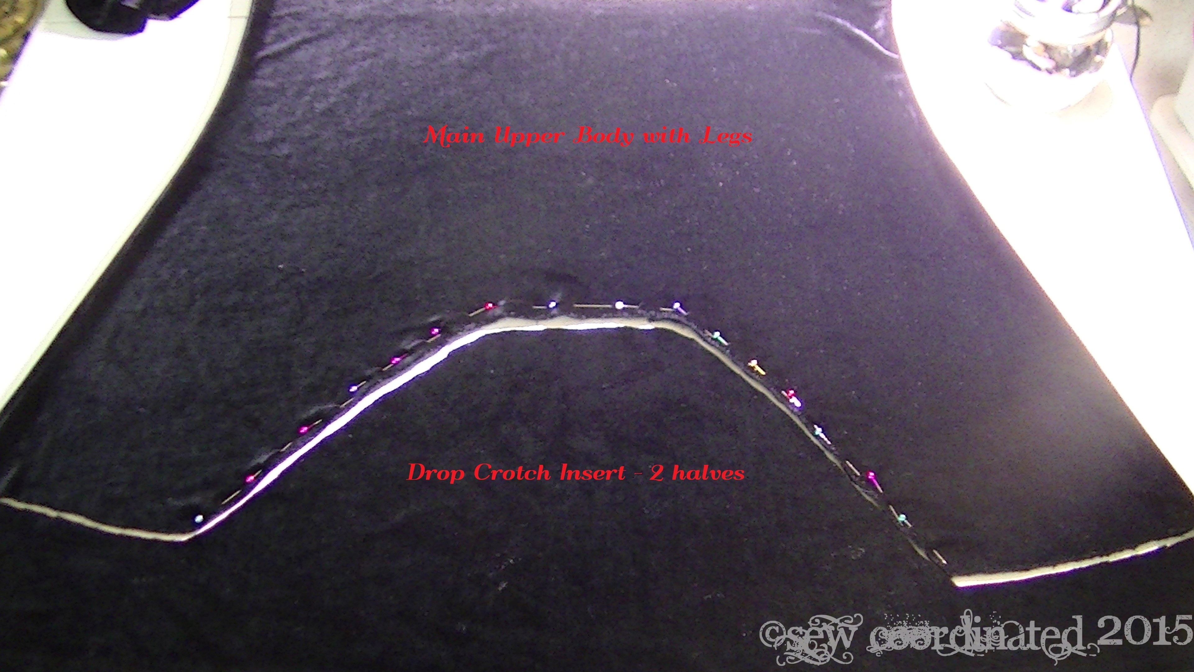 I cut up the dress as shown in the pics below, and used the labeled parts for the pants. Most of the skirt section was used as the upper body and upper legs of the pants, and the part that was cut away was used as the drop crotch insert. I had to cut it down quite a bit more because the effect was too droopy. The dress sleeves were used as the lower legs of the pants, which were attached to the main body. The only thing I did that isn’t shown was gathering the upper body part before joining it to the waistband piece.