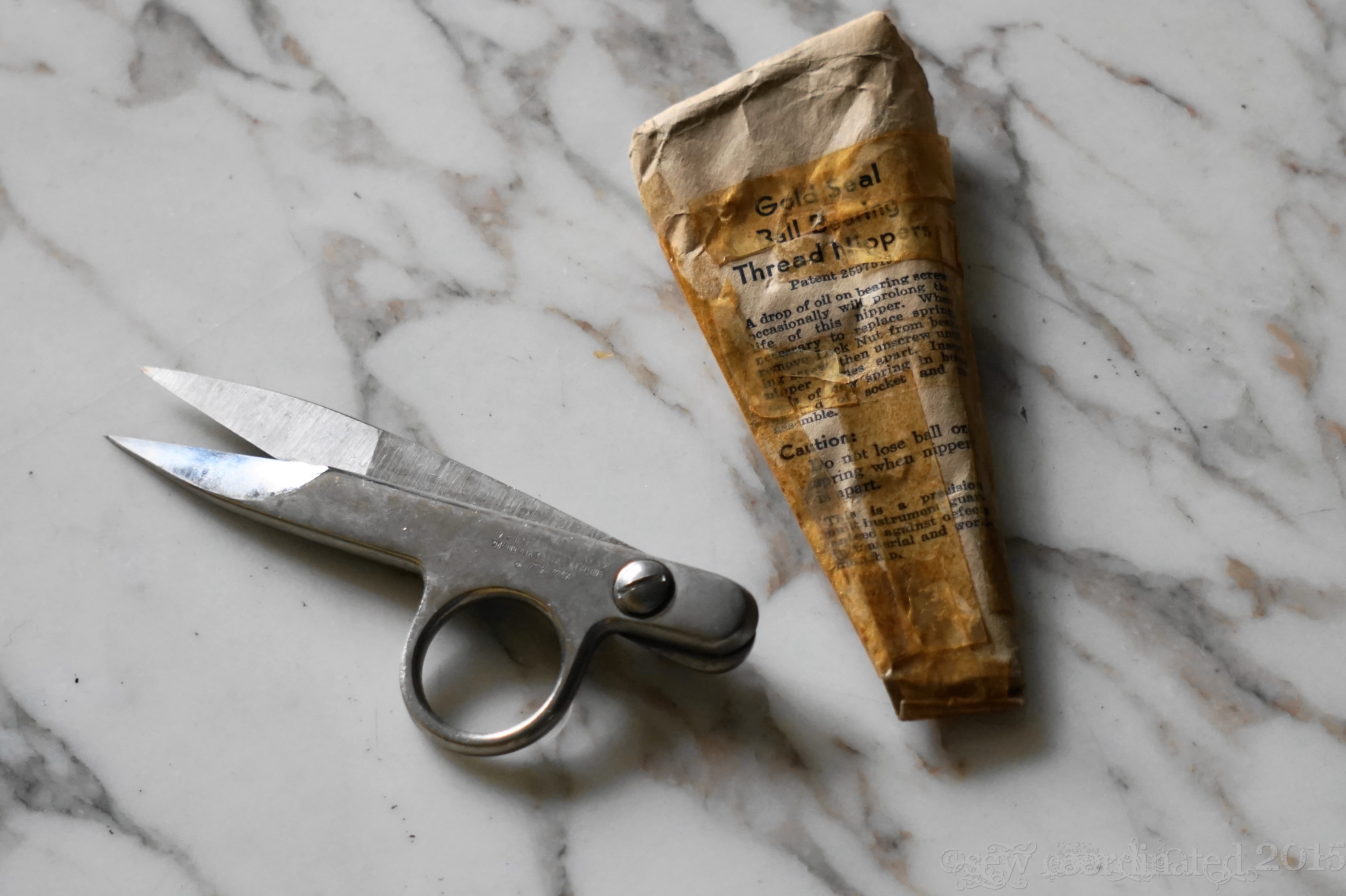 I’ve been visiting with my Grandmother. She can no longer live alone, and needs help with the tremendous task of moving. I traveled 3000 miles (4828 km) to her home, and I’ve spent the past month assisting her, helping her settle her affairs, and preparing for the impending change that will soon come. Part of this preparation involves sorting through her lifetime of possessions, and deciding what should be kept, donated, thrown away or sold. She’s been, for the most part, a saver of things, and that’s made my job difficult due to the sheer amount of things to sort through, and at other times, interesting for the surprise of discovering the unknown. One of the treasure troves I’ve found while here is her stash of vintage sewing tools and notions, sitting untouched and unused for many a year. Like most women of her time, my grandmother knew the basics of sewing. It was considered a mandatory skill that all women should have, and her life is no exception to that cultural standard. Here are some highlights of her collection: