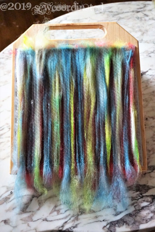 I had a good time over my holiday, thanks to a special gift that I treated myself to: a blending board. My spinning wheel had been sitting idle for some time due to a lack of fiber to spin with. I follow Paradise Fibers on Instagram, and after watching several of their blending board videos, I was smitten. It just looked like so much fun, I had to get one! Naturally, I also bought some fiber, a mix of undyed wool and silk.