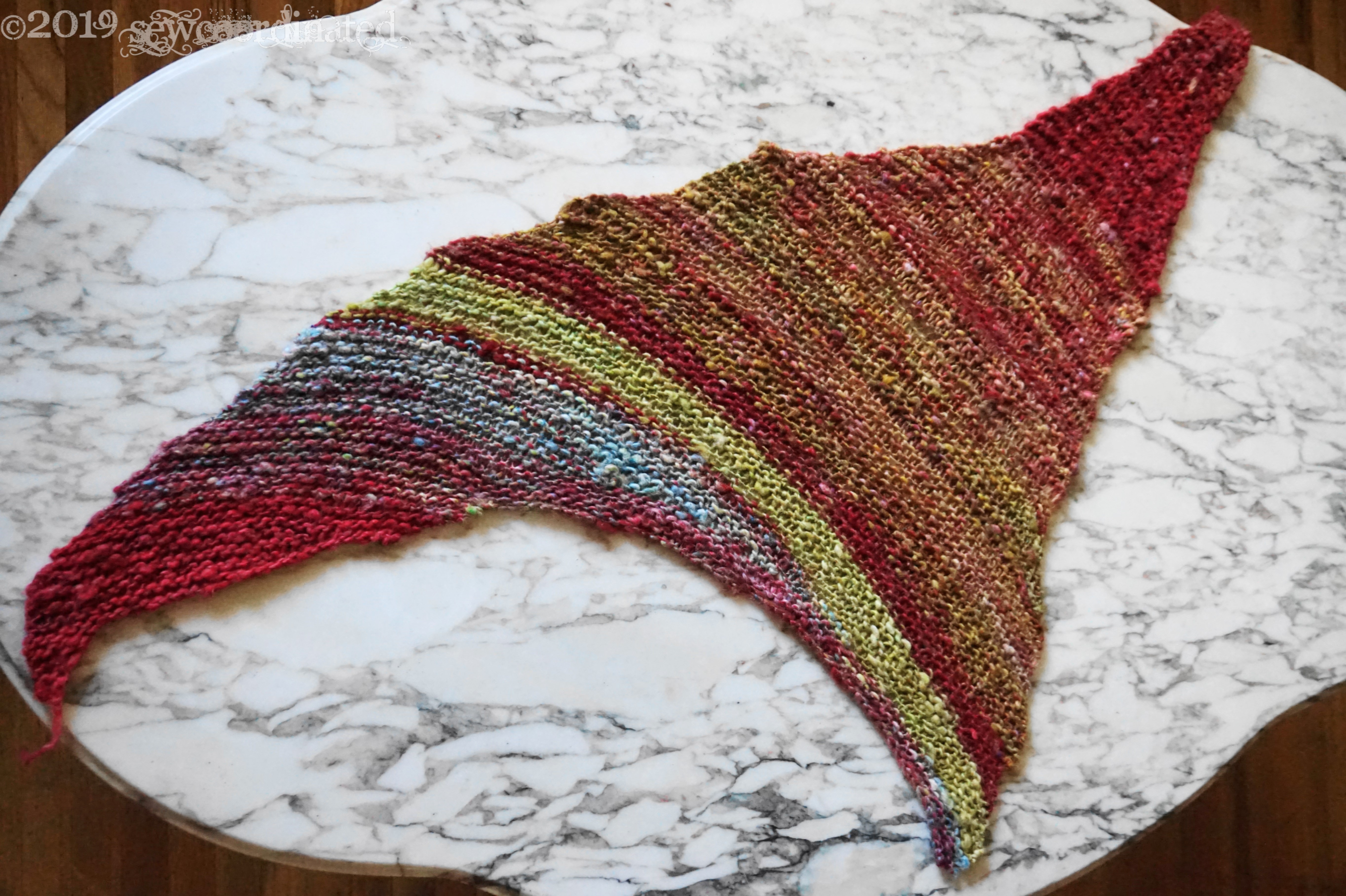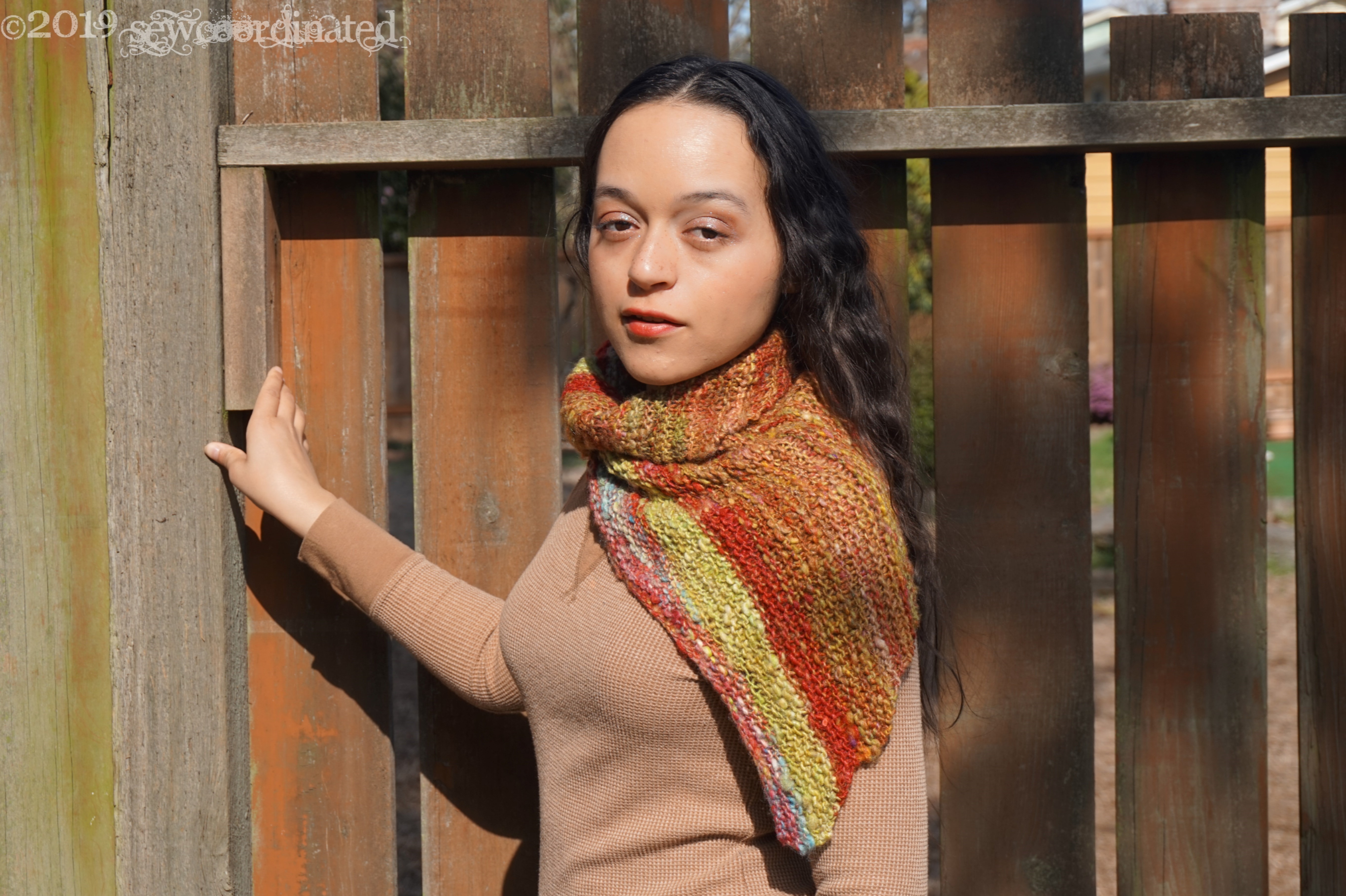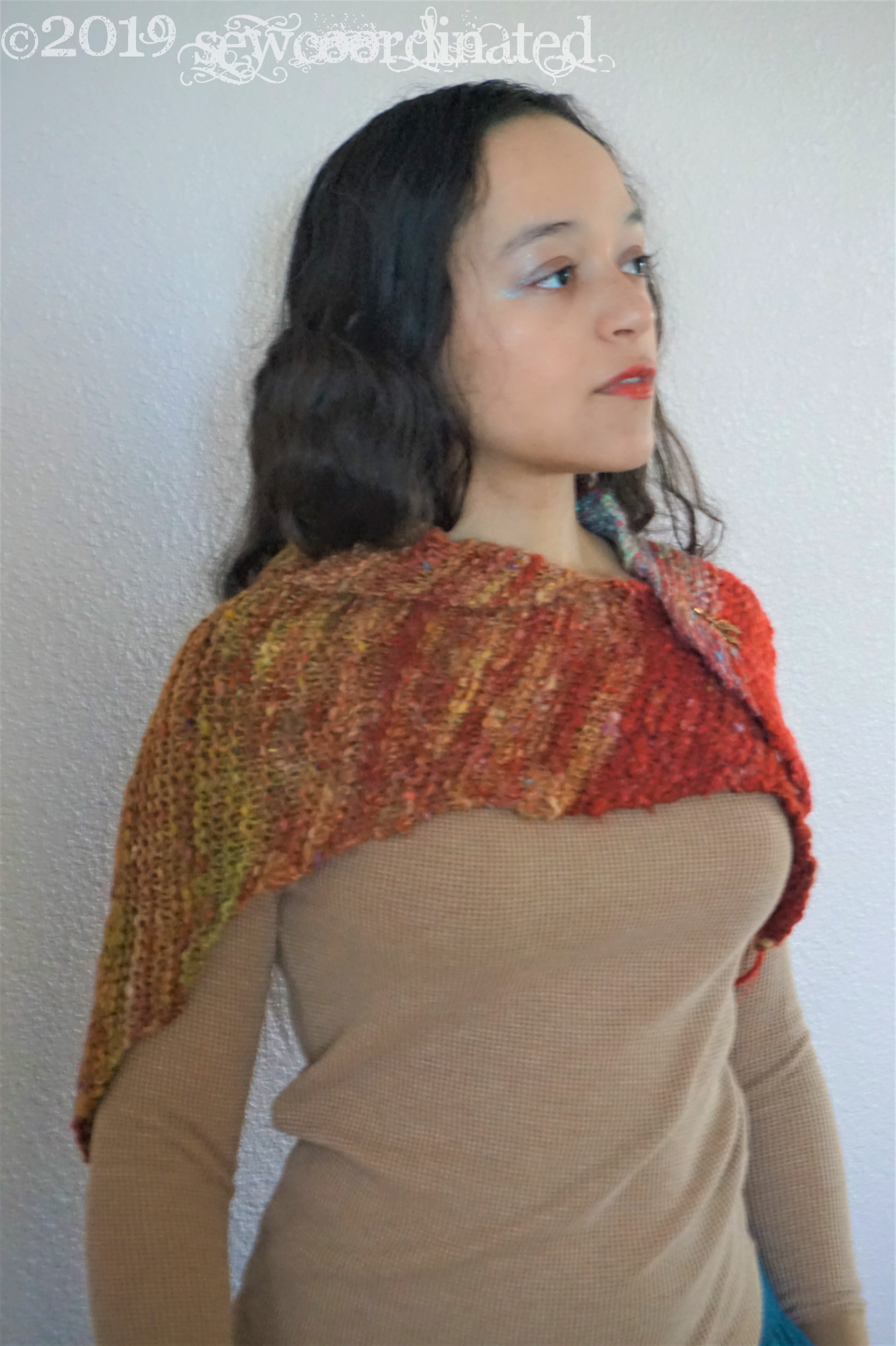 Remember those rolags that I made? Well, I spun those up into an art yarn single that I just realized I only posted on Instagram. I recently knit that into a small, free form art yarn scarf/wrap.