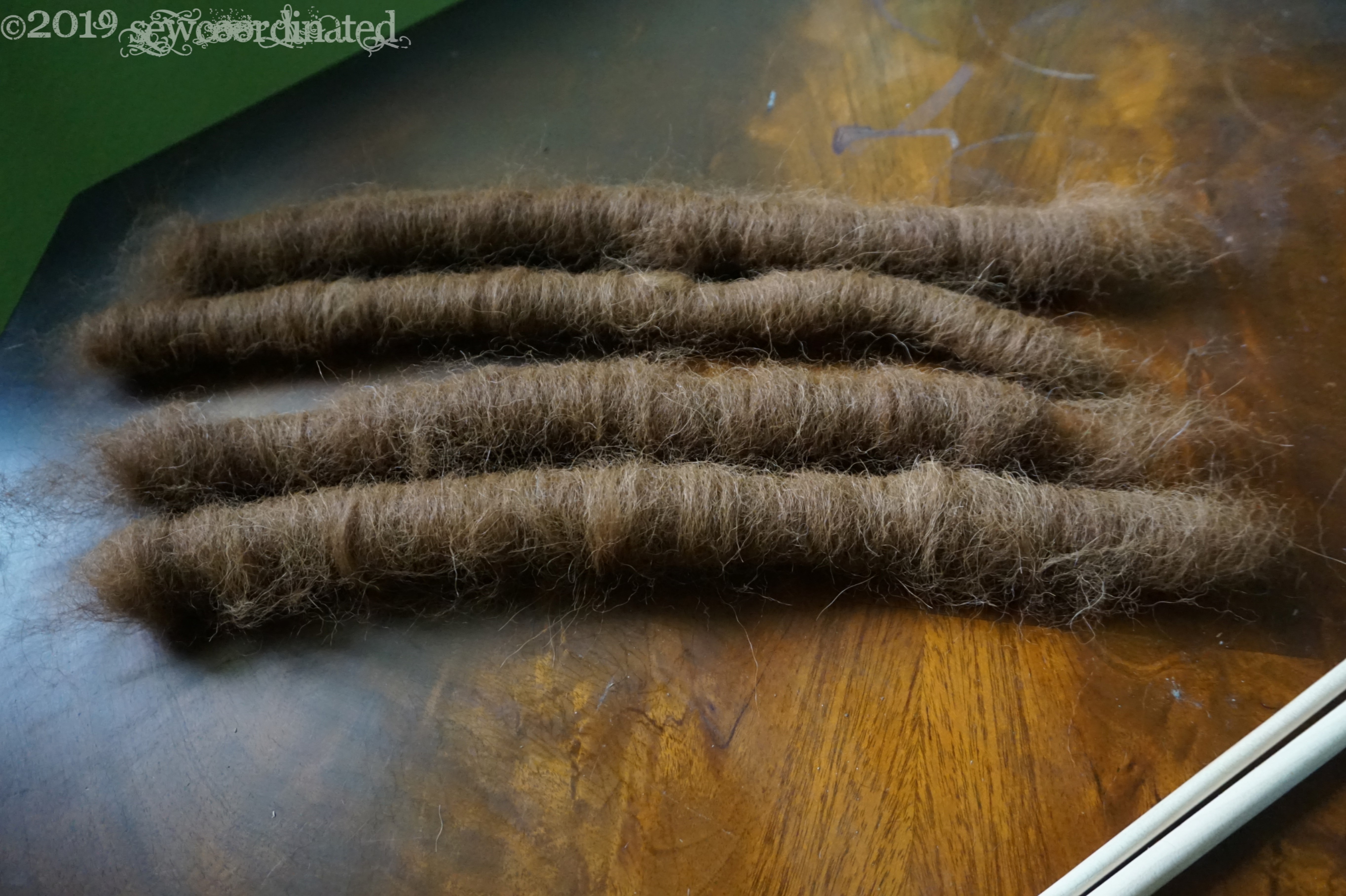 I’ve been busy processing alpaca lately….I visited a farm and bought some fleece. Washing, combing, carding, spinning. This is my first experience prepping raw fleece for spinning, and if you’ve seen my Instagram feed then you’ve seen part of the process. I had to buy some wool combs for this, it was the only way see the process through to the end. Here you see the washed, combed and carded fleece, spun on the wheel: