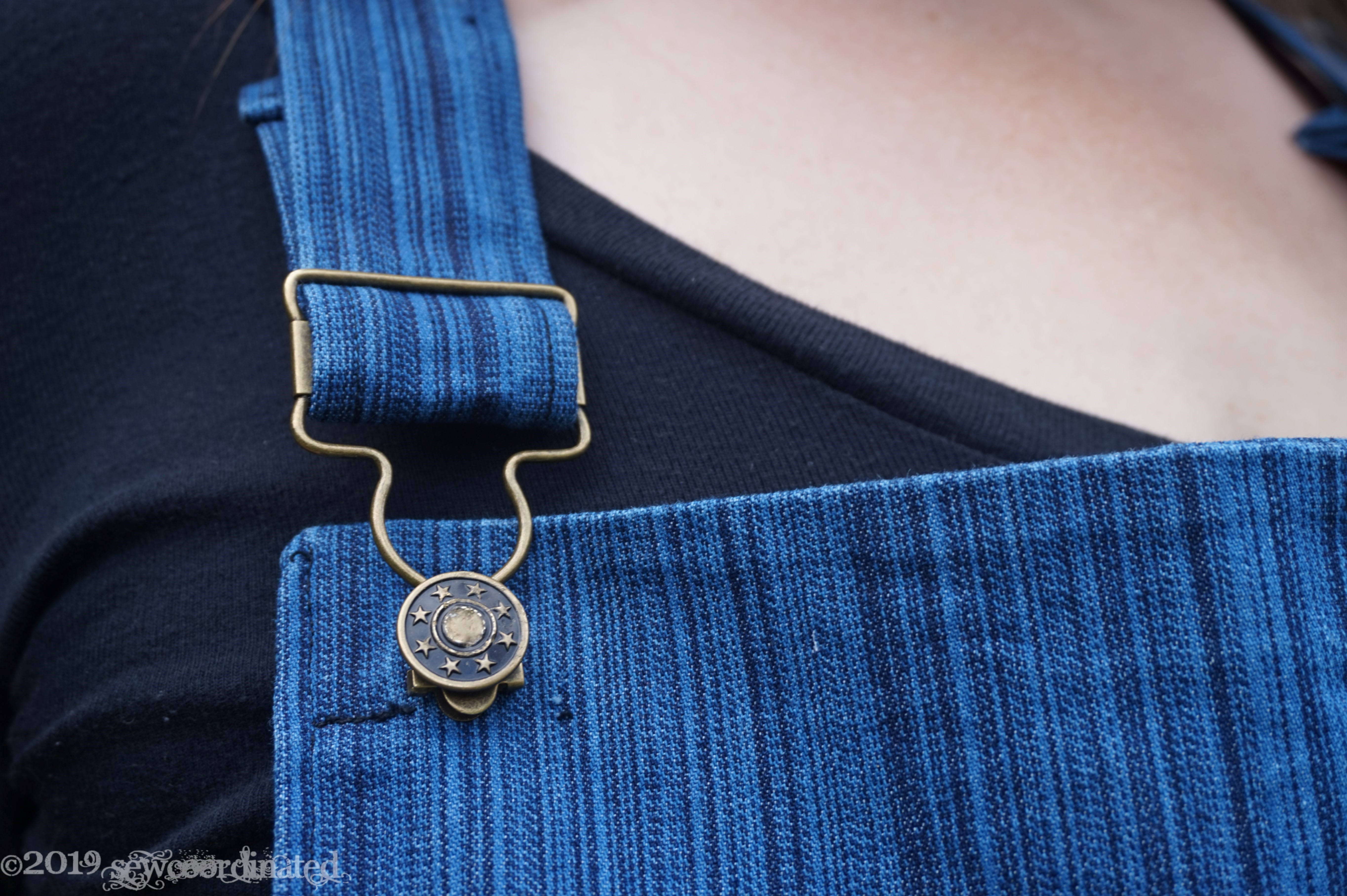 As far as aesthetics go I opted to leave out the stitching on the top of the front bib. Instead I just tacked the facing in place at the corner sides. I thought it looked better without it. I also didn’t stitch the strap to itself in the buckle area. I like a more carefree assembly in case I ever want to re-adjust the strap.