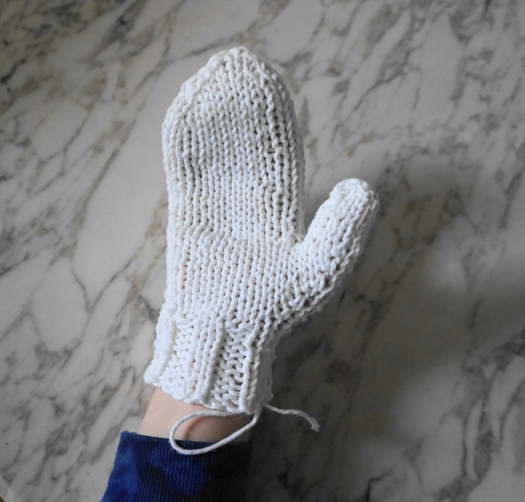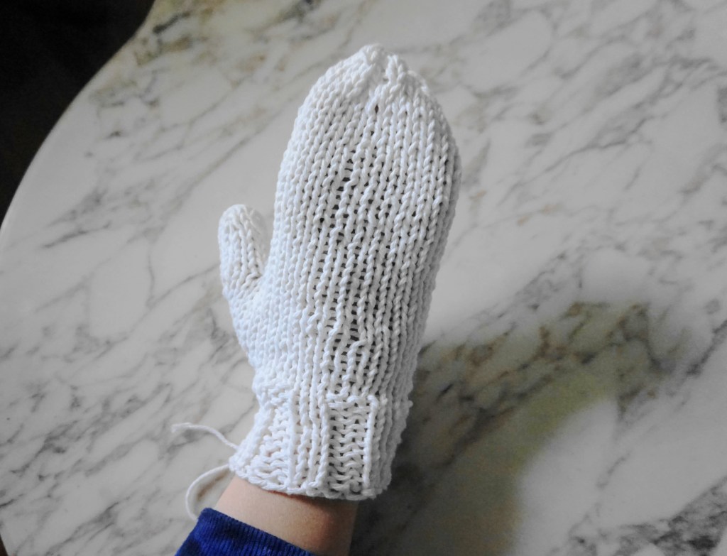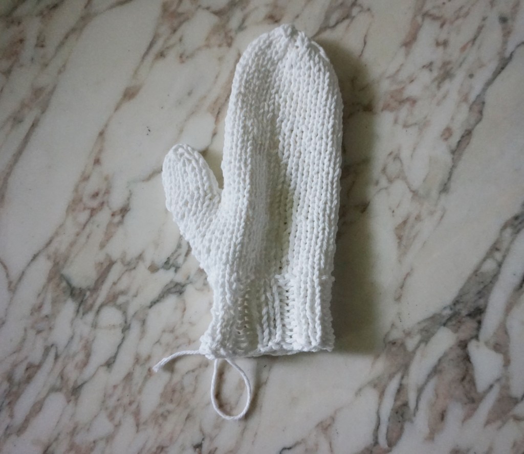 As the title says, it’s a Bath Mitt. I have a lot of spare Lion Brand Kitchen Cotton that I bought on sale a few years back, and I decided to start making things with it. I began by making a washcloth, as shown in this post. Then I thought maybe a bath mitt would be another useful thing to make, as an improvement on the basic washcloth.