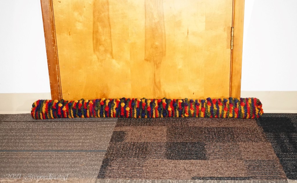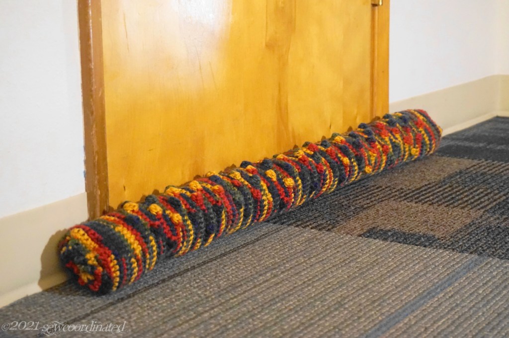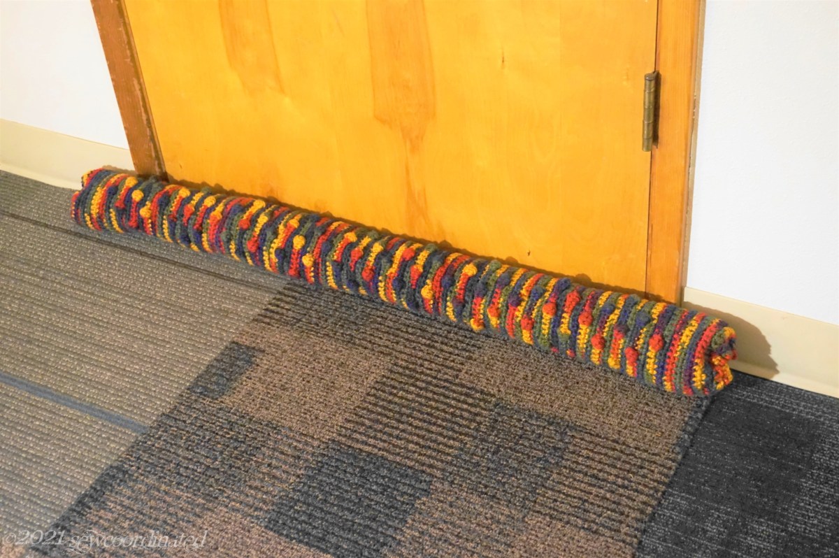 This looks much better and is more functional than using towels to block the draft. It was a great way to use up spare yarn and materials that I had, while upgrading my crochet skills at the same time.