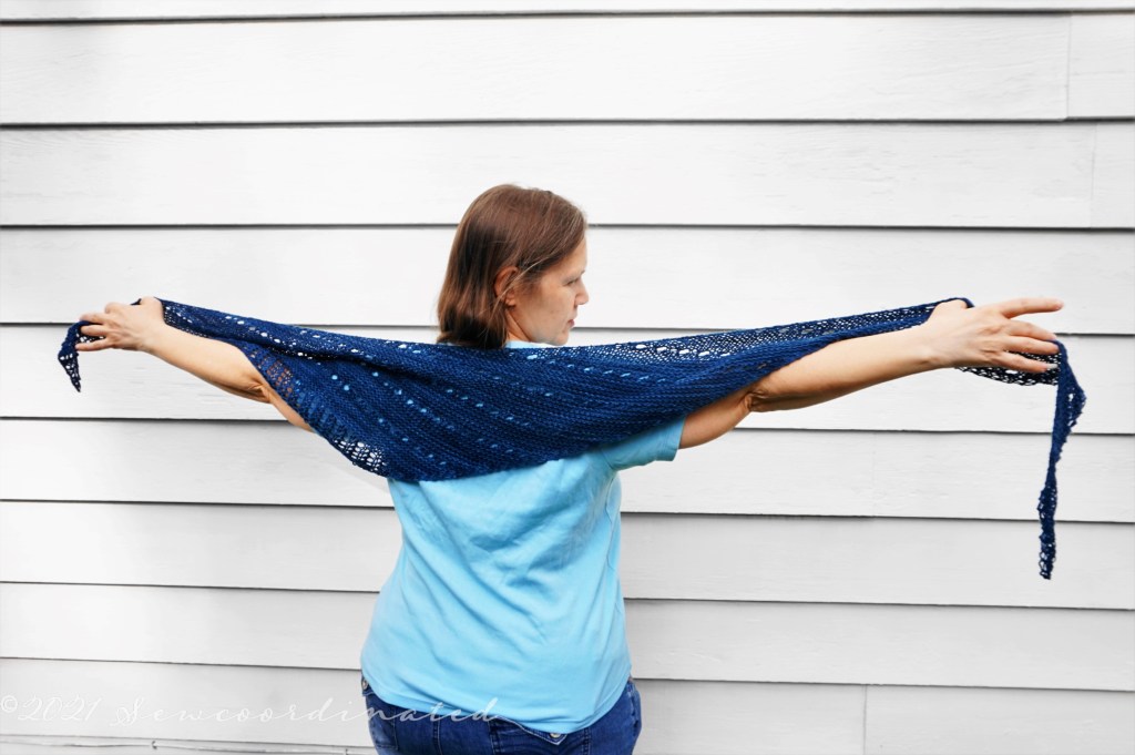 I began searching Ravelry for a shawlette. I didn’t want a huge shawl, just something to cover my neck on cold days. I had a good time searching, as always – browsing Ravelry patterns is fun! The DK weight definitely narrowed down the choices. Many shawls are made in fingering. I finally found one I liked, that was around the size I had in mind.