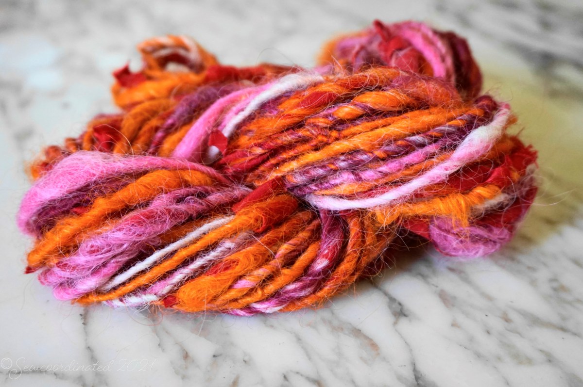 These spins feature inclusions of silk scraps from my sewing stash, a new technique that I’m playing around with for fun. They make a nice addition to art yarn, and help me bust out parts of my fabric stash, which is a big focus of my work this year. More on that in my next post!