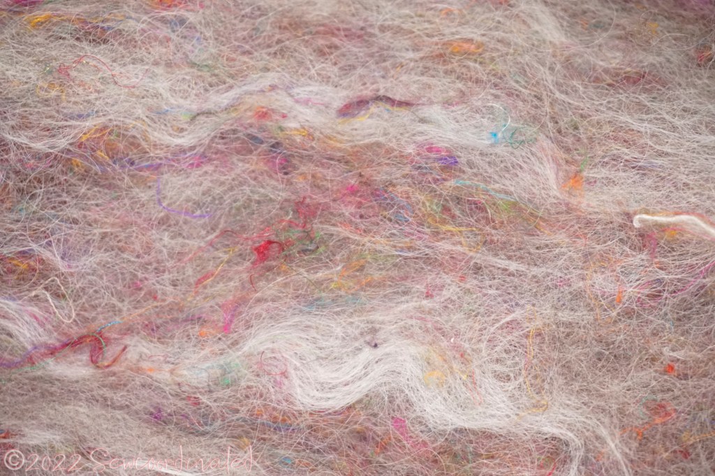 I’ve learned a lot in the few months that I’ve been working with the wool. I chose to work with the gray first, just randomly because it was the first bag I opened. It turned out to be the greasiest out of the 3! Washing wool is no joke, and takes quite a bit of patience. I made some mistakes, like changing the temp too drastically, and ended up with felted pieces that looked like wigs, but I was working in small batches so it’s not so terrible of a loss. I just throw those in the garden and compost, they’re good for the soil. I’m finally starting to get the hang of it, and I’ve produced a new blend for spinning. It’s a tweed blend of the gray Romney, Suri alpaca, and recycled Sari silk. I call it “Grandma’s Cosmic Hair”.