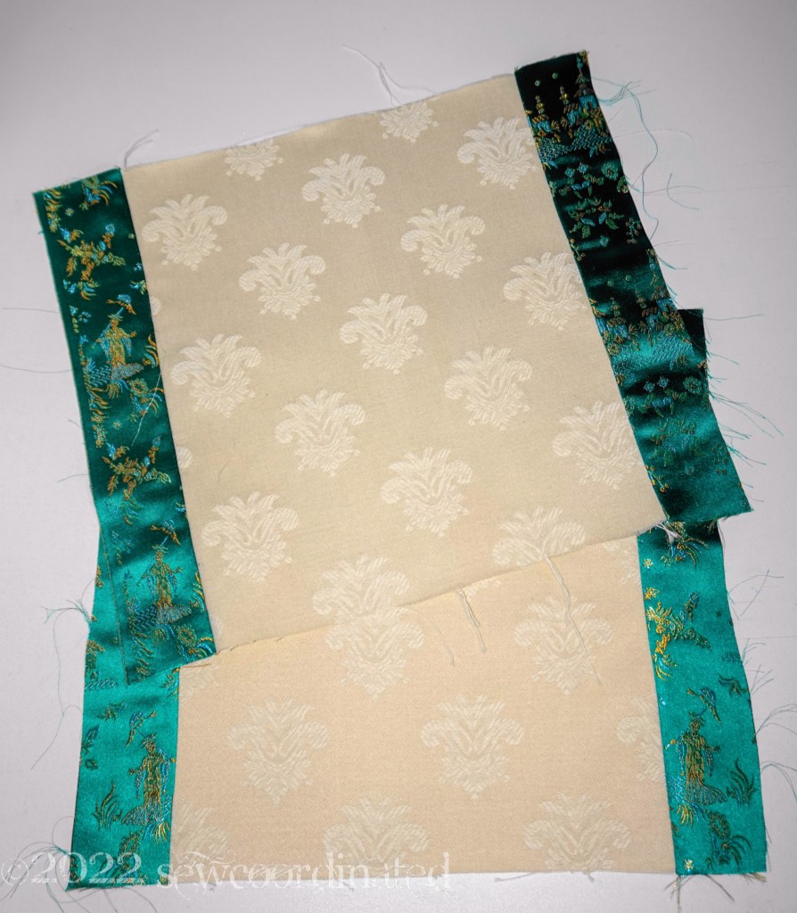 Then I pieced the longer ends with the satin ends to complete the liner walls, and finally, pieced the bottom to that.