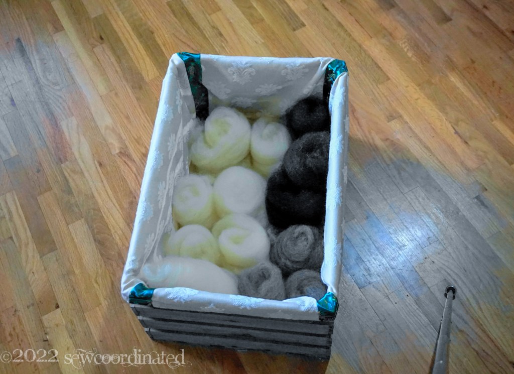 I needed a nice place to store the wool that I’ve been processing lately. I had this crate that I bought from Joann’s a few years back: