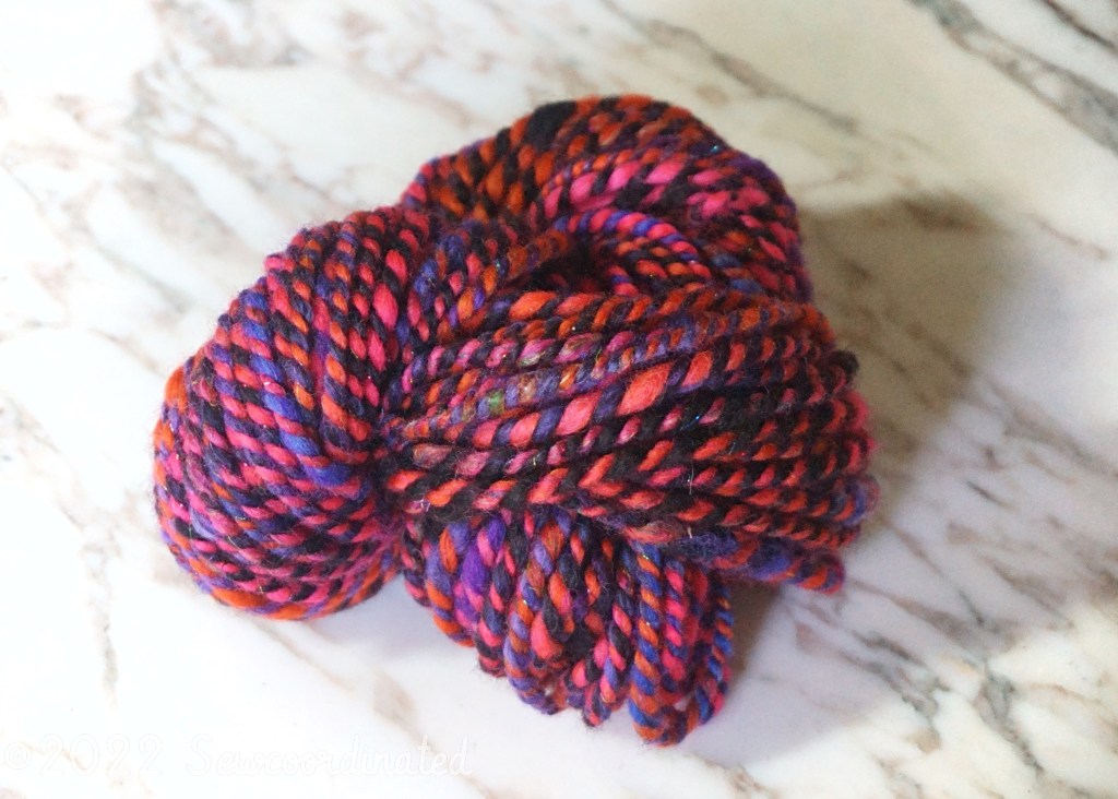 My first Art Yarn spun from the fleece that I bought last year. Yes, it’s taken THAT LONG to process. Bringing wool from sheep to shawl isn’t for the faint of heart. That and the fact that I bought 3 large fleece. There are many steps involved: