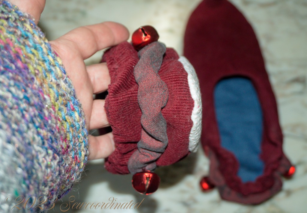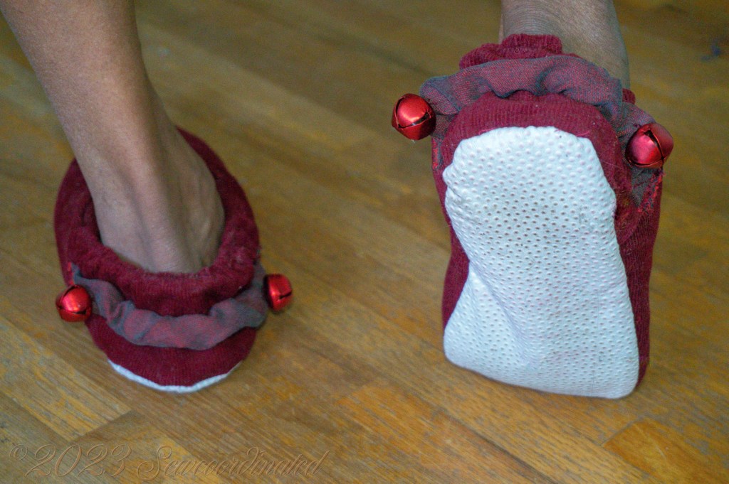 For some extra fun we added a couple of bells to the outside elastic belt of each slipper.