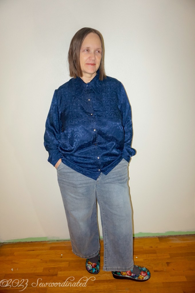 I’m pleased with the shirt though, and I now have a dressy/casual button up wardrobe basic in this Autumn/Winter 2023’s most on trend color: Blue!