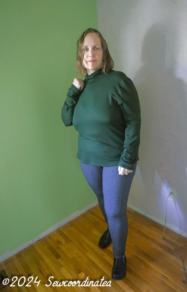 Whatever the reason, the turtleneck collar is floppy and relaxed…not what was promised on the pattern envelope.