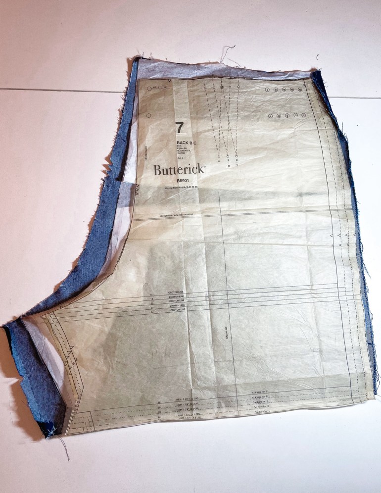 The fabric I used is a 7 oz. stretch denim from Lucky Brand, bought at Joann’s It’s a really versatile fabric and I like the way it was kept in the store. It had it’s own wide Lucky Brand logo elastic to keep it secure on the bolt. Wish I’d taken a pic! You can see it here on this short vid with a buyer from Joann’s talking about it. This is something new I’ve noticed. The name brand fabrics from established clothing companies have this lately. The Eddie Bauer fabrics had it too. It’s a small detail that I feel adds a touch of class to the fabric buying experience.