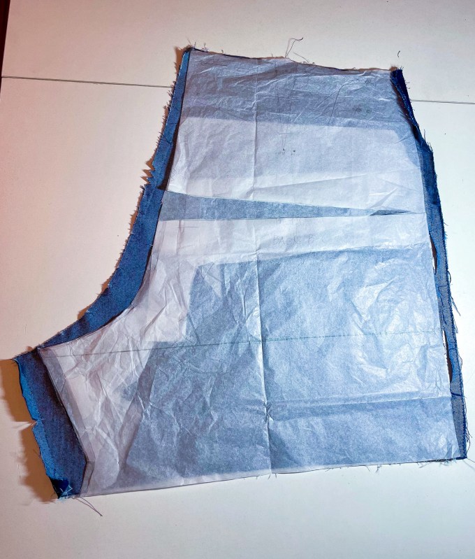 This next pic shows the 2 previous plus an overlay of the original unaltered pattern piece. I wanted to see the difference between all 3.