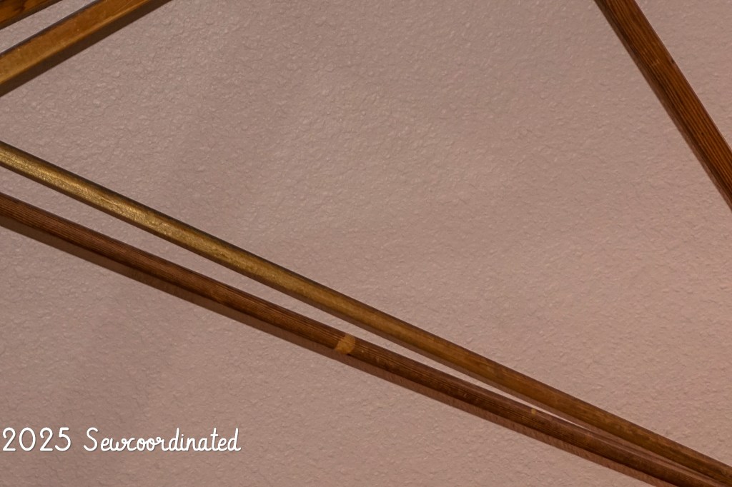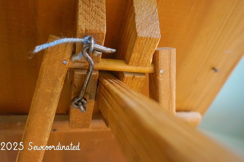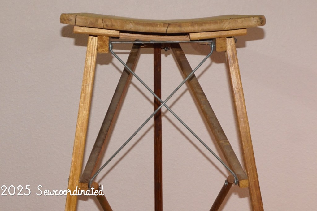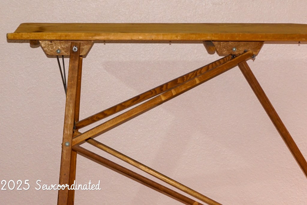 As you can see, it’s build is different from modern ironing boards. It has an older style of bracing that we refer to as a K shape in our house. Many modern boards utilize an X shaped bracing to hold the board up, and are made of metal. The big difference is that this board is made of wood. That is changing though, and I’ve seen some modern boards made of wood available online.