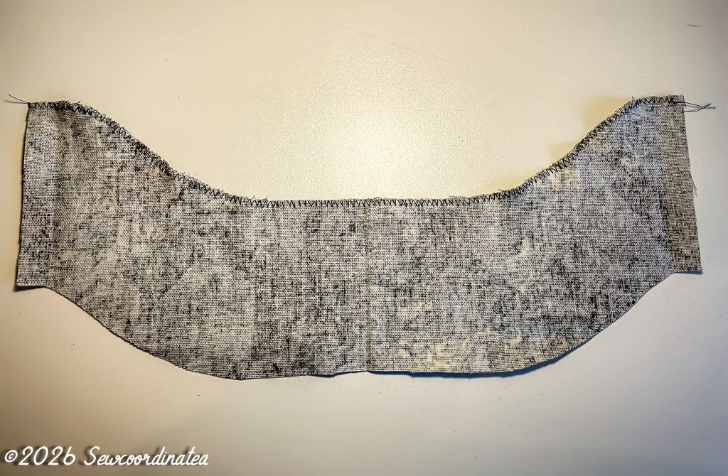 I folded the seam allowance over on the right side and pinned it (above). I then stitched that into place:
