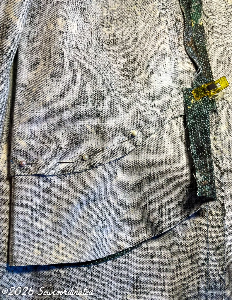 Now it was time to pin the extension to the pocket. I began by pinning half of the extension to the under side of the pocket: