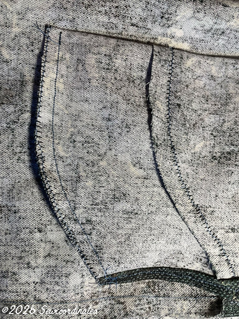 After I finished the pants, I put my phone into the pocket. It was at that point that I first noticed that the pocket was shallow, meaning my phone just fit. At the time I thought I could probably live with it that way, so long as it holds my phone securely. It was fine until one day I was sitting down and the phone slid out from the pocket and hit the floor. As a seamstress, the very first thing that came to my mind when this happened was: “I’ve gotta fix that pocket!”